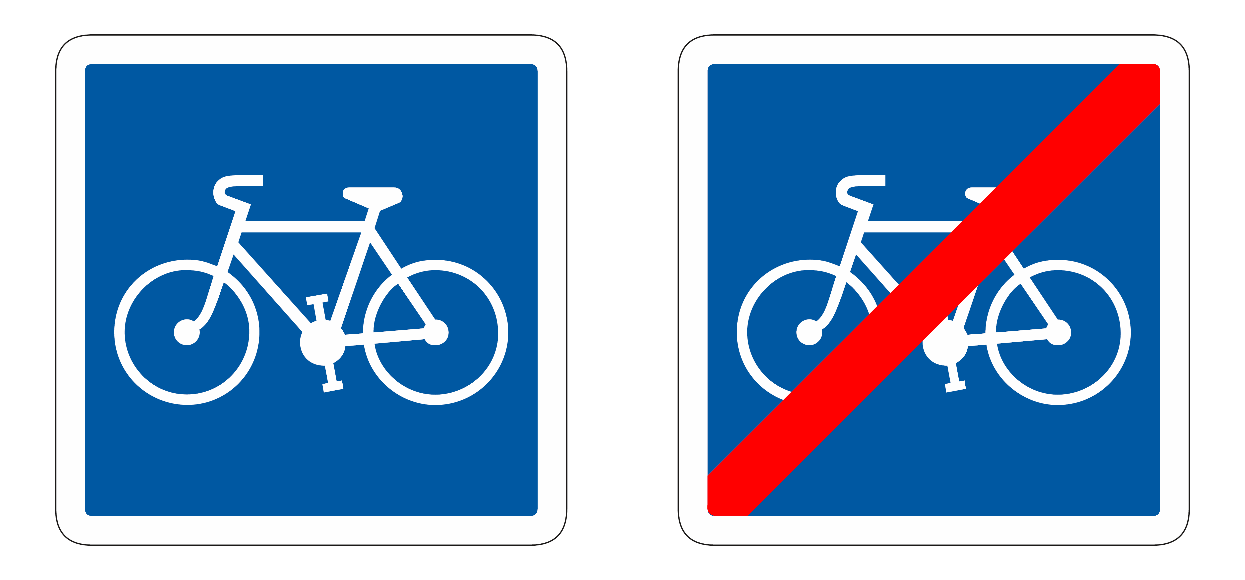 Ce panneau marque le début d'une voie réservée aux cycles. À la fin de cette zone, les cyclistes retrouvent la chaussée commune et doivent de nouveau partager la route avec les voitures.