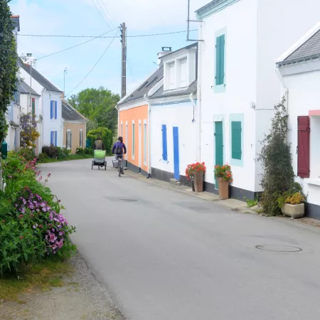 D’une superficie de 84 km2, Belle-Ile-en-Mer est la plus vaste des îles du Ponant. C'est aussi l’une des plus hautes puisqu’elle culmine à 71 m. Un itinéraire cyclable vous permet de rejoindre Quiberon depuis Auray. À 13 km au large de la presqu’île de Quiberon, vous arriverez par bateau au Palais. Sur l'île vous trouverez facilement un vélo à louer en débarquant. Bon à savoir, de nombreux touristes viennent sur l'île avec leur voiture ce qui engendre pas mal de trafic sur l'île durant les périodes de forte affluence. Attention également au relief sur l'île et au vent, l'utilisation d'un VAE peut s'avérer utile.