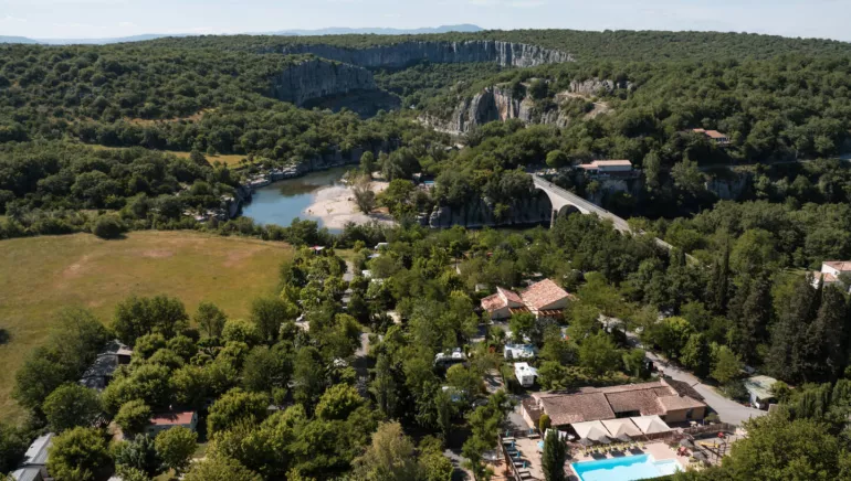 Idéalement situé entre Ruoms et Vallon-Pont-d’Arc, le Camping du Pont vous accueille dans l’atmosphère paisible du village de Pradons, au cœur d’un paysage naturel d’exception. Niché en bordure de la rivière Ardèche, avec ses berges de sable et son environnement préservé, notre établissement offre un cadre authentique où sérénité et art de vivre se rencontrent.