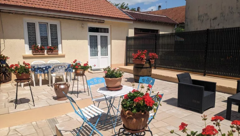 1 suite composée de 2 ch. les vignes et le colombier (2 lits 2 pl- 2 lits superposés pour enfant) et d' un coin salon - 1 chambre en mezzanine la Cordialine (2 lits 1 pers.) avec kitchenette. Salle d'eau et WC privatifs - Parking Cour - Véranda donnant sur le jardin - Salon de jardin.