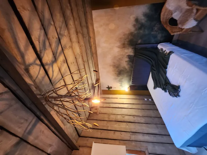 Lodges extérieurs lumineux, confortables et douillets à la décoration soignée et originale pour des nuitées au milieu des sapins et épicéas.