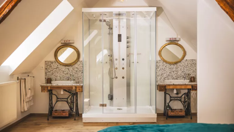 - Salle de bain ouverte sur la chambre avec douche sensorielle pour 2
