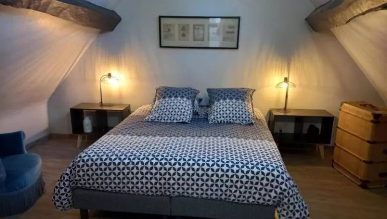 Cédric vous accueille chaleureusement au Havre de Saint-Germain, une jolie propriété située en plein centre de ce ravissant petit village. La maison d'hôtes, bâtie dans une belle longère traditionnelle, vous ouvre ses portes pour partager des petits-déjeuners gourmands, ou profiter de la délicieuse table d'hôtes. L'appartement se situe juste en face, à l'étage de l'ancien four à pain transformé en dépendance. Avec sa décoration colorée, et tout le confort d'un petit studio, c'est le pied-à-terre idéal pour découvrir le sud de l'Eure et ses paysages de campagne. En plein cœur de la vallée de l'Avre, secrète et pleine de charme, s'offre à vous un environnement propice à la pêche, praticable sur place, de quoi séduire les amateurs. Les randonneurs seront quant à eux ravis de découvrir la région en empruntant le GR22, situé juste au bout de la rue ! A L'ETAGE: Entrée sur la pièce de vie colorée avec coin salon, petit espace repas et cuisinette bien équipée. Sur la gauche, une chambre mansardée avec un lit double en 160X200, séparable en deux lits simples. Sur la droite, une salle d'eau avec grande douche et wc. Prises pour véhicules électriques situées en face de l'hébergement.