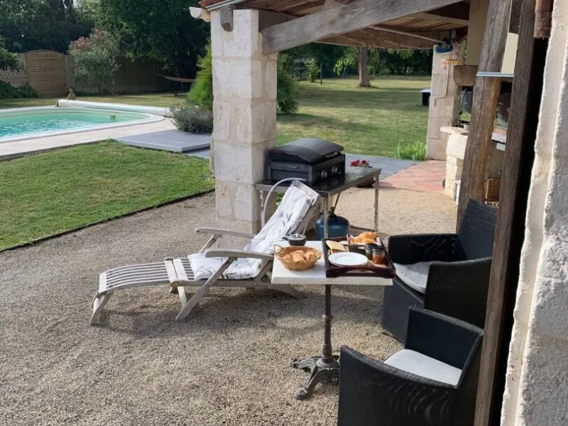 Idéalement située au cœur du Marais Poitevin, dans le triangle: Puy du Fou, La Rochelle et les plages. A 1 heure 15 minutes du Futuroscope.Au calme dans une jolie maison en pierre avec piscine chauffée.