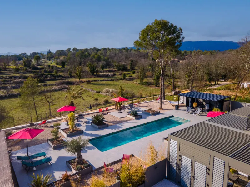 Le cadre est privilégié sur un terrain arboré sud/sud-ouest avec un couloir de nage de 12X3m avec une profondeur 1.50m, spa, salle de sport extérieure et terrain de pétanque.