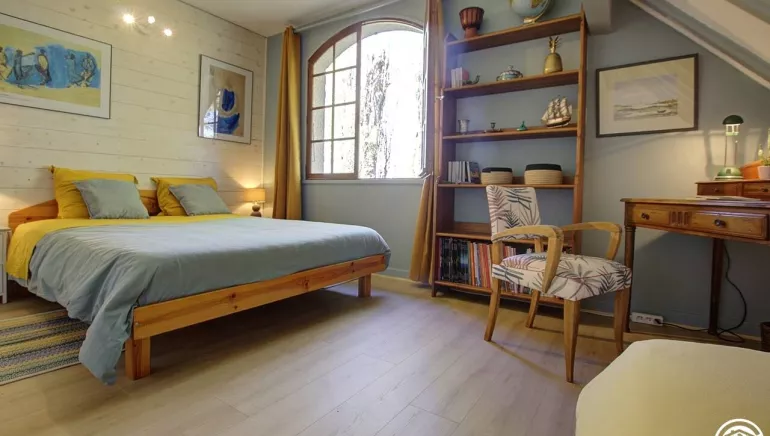 A 4 km du centre de Belley, Pascal et Brigitte, vous ouvrent les portes de leur maison Bugiste et vous proposent deux chambres situées à l'étage. Depuis le hall, vous accédez aux chambres par un escalier en bois. La première chambre pour 3 personnes est équipée d'un lit en 160 *200 et un en 90*190, la deuxième chambre, mitoyenne à la première, est composée d'un lit double en 160*200. Les deux chambres sont équipées chacune d'un espace bureau et d'une salle d'eau (avec WC) privative, située sur le même palier mais non attenante à la chambre.Des peignoirs sont proposés pour plus de confort. Cet étage comprend les deux chambres d'hôtes, ainsi qu'un espace privé aux propriétaires (bureau et une chambre réservée à la famille). Au même niveau, un coin détente avec télévision et plateau de courtoisie, destinés aux hôtes. Les petits déjeuners et la table d'hôtes ou paniers repas (sur réservation), sont pris sur une des trois terrasses lors des beaux jours ou dans l'espace repas. Le temps d'une halte ou d'un séjour prolongé, vous pouvez vous ressourcer dans le grand parc pour profiter du calme des lieux. Un parking pour deux voitures (non sécurisé) est réservé devant la maison. Pour les amateurs de deux roues, un local fermé pour vélos et ou motos. A 500 mètres, la forêt de Rothone vous propose de belles balades. Vous pouvez également découvrir Belley, région de terroir avec ses chapelles, ses lavoirs, ses fours à pains et ses domaines viticoles. Cette ancienne capitale du Bugey, est idéalement entourée de lacs, rivières, montagne, qui feront le bonheur des amoureux de la nature. Laissez vous transporter vers le massif du Grand Colombier et la Via Rhôna pour de belles randonnées, pêcher, et découvrir les produits du terroir. Limitrophe Savoie avec lac du Bourget, Aix les Bains, Chambéry.