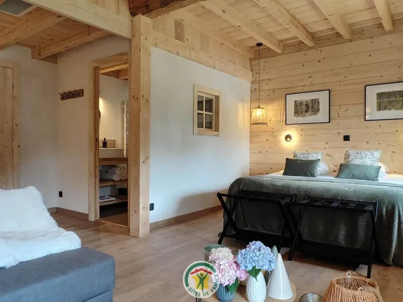 En rez de chaussée, vous trouverez, un salon de détente avec une pièce commune de table d'hôtes. A l'étage, deux chambres séparés avec salle d'eau , wc privatifs. Chaque chambre se compose de 2 lits en 90x200 ( ou 1 lit double 180x200) et un canapé convertible, mini bar à disposition, bouilloire, café et thé. 4 personnes possibles par chambre.