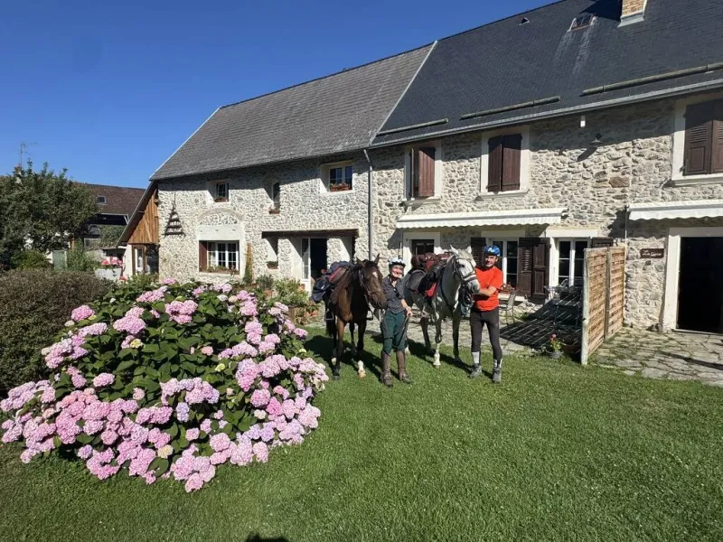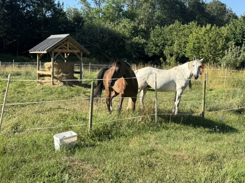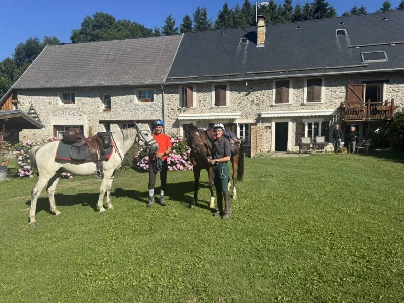 La Ferme de Jonan, corps de ferme traditionnel en pierres, entièrement rénovée & aménagée en 2 gîtes mitoyens et 2 chambres d'hôtes.Terrasse privative avec salon de jardin. Le site est labellisé accueil cavalier et accueil vélo.