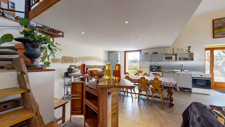 Les hôtes bénéficient d’une vaste pièce de vie comprenant un coin salon en mezzanine ainsi qu’un espace cuisine. L’accès aux mezzanines se fait par une échelle et n’est pas adapté aux jeunes enfants. Lit bébé disponible sur demande. Livraison de repas possible sur commande auprès d’un restaurateur partenaire.