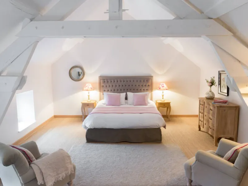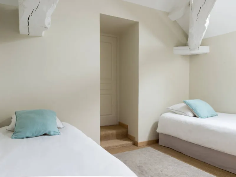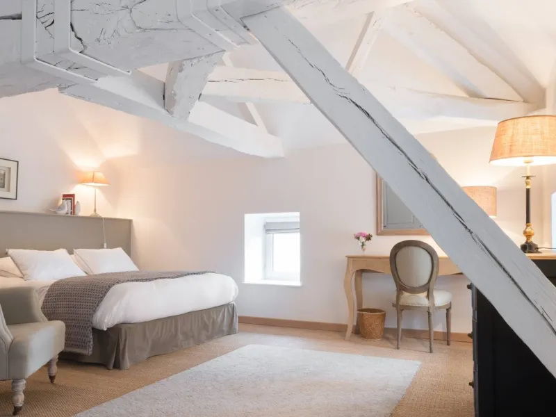 Chambre de Paloma : 31 m² au 2ème étage de la maison d'hôtes avec salle de bains indépendante. Vue dominante sur la chapelle et le vignoble. Lit de 160 x 200. Connexion Internet. Salle de bains avec grande douche, 2 lavabos, serviettes de toilettes et grands draps de bains, sèche-cheveux, produits de soin. Chambre de Anne et Jean : 25 m² au 1er étage de la maison d'hôtes avec salle de bains indépendante. Vue dominante sur la chapelle et la campagne environnante. Lit de 160 x 200. Connexion Internet. Salle de bains avec baignoire, 2 lavabos, serviettes de toilette et grands draps de bains, sèche-cheveux, produits de soin.