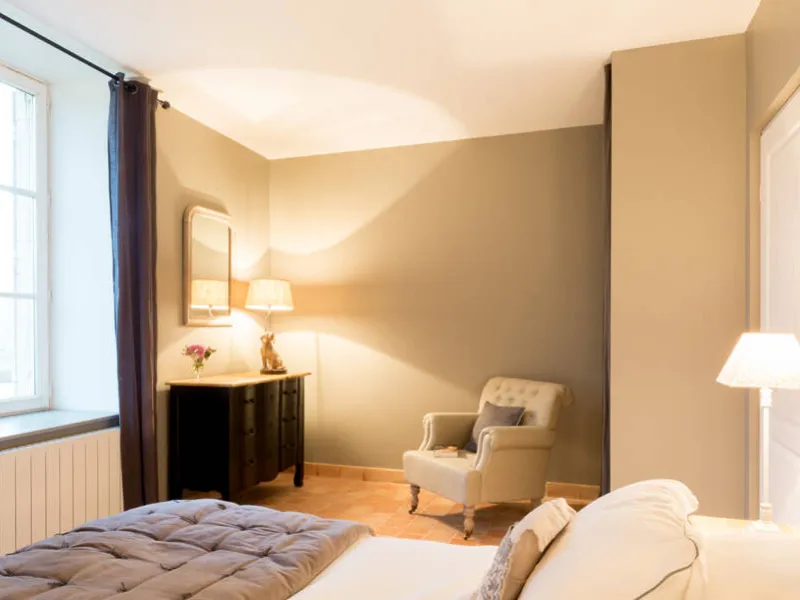 La suite des Comtes : 63 m² au 1er étage du donjon avec une entrée indépendante. Vue dominante sur le vignoble et la campagne environnante. Lit de 180 x 200. Connexion Internet, télévision, enceinte Bluetooth. Salle de bains avec baignoire, 2 lavabos, peignoirs de bain, sèche-cheveux.Chambre de Suzanne : 42 m² au 2ème étage de la maison d'hôtes avec salle de bains indépendante. Vue sur la chapelle et la terrasse sud. Lit de 160 x 200. Connexion Internet. Salle de bains avec grande douche, 2 lavabos, serviettes de toilettes et grands draps de bains, sèche-cheveux, produits de soin. Cette chambre peut se transformer en suite familiale pour 4 personnes.