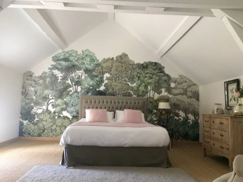 Chambre de Joseph : au 2ème étage de la maison d'hôtes avec salle de bains indépendante. Vue dominante sur la chapelle et la campagne environnante. Lit de 160 x 200. Connexion Internet. Salle de bains avec grande douche, 2 lavabos, serviettes de toilettes et grands draps de bains, sèche-cheveux, produits de soin. Cette chambre peut s'agrandir en suite (43m2 au total) avec une deuxième chambre attenante pour 3 personnes (3 lits de 90x200)