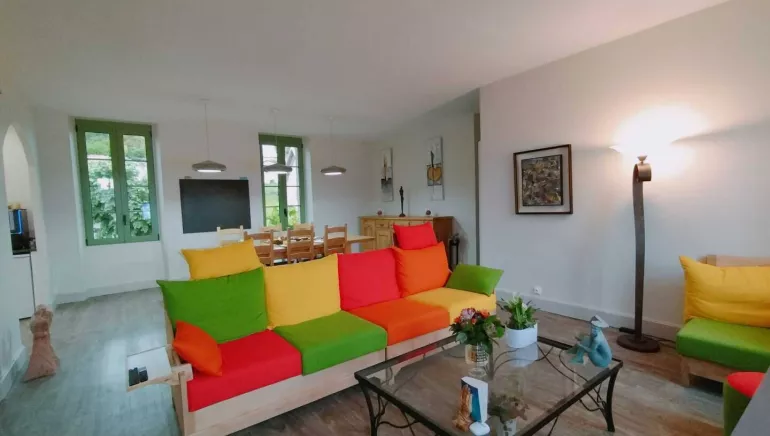 Notre salon est à votre disposition, télévision, canapé, fauteuil rendront votre séjour convivial.