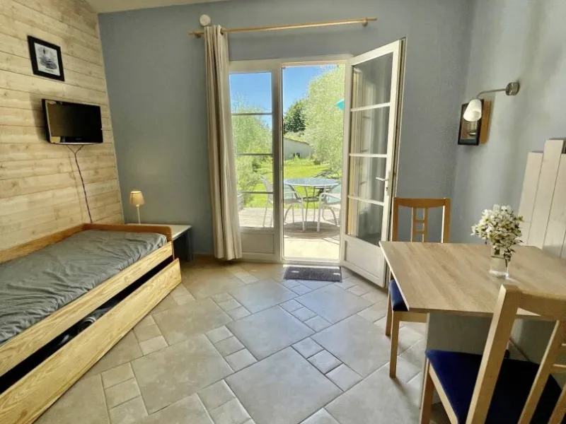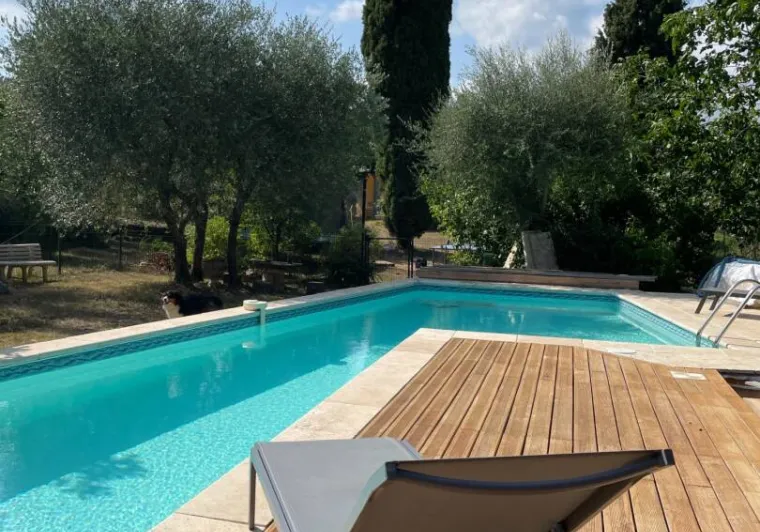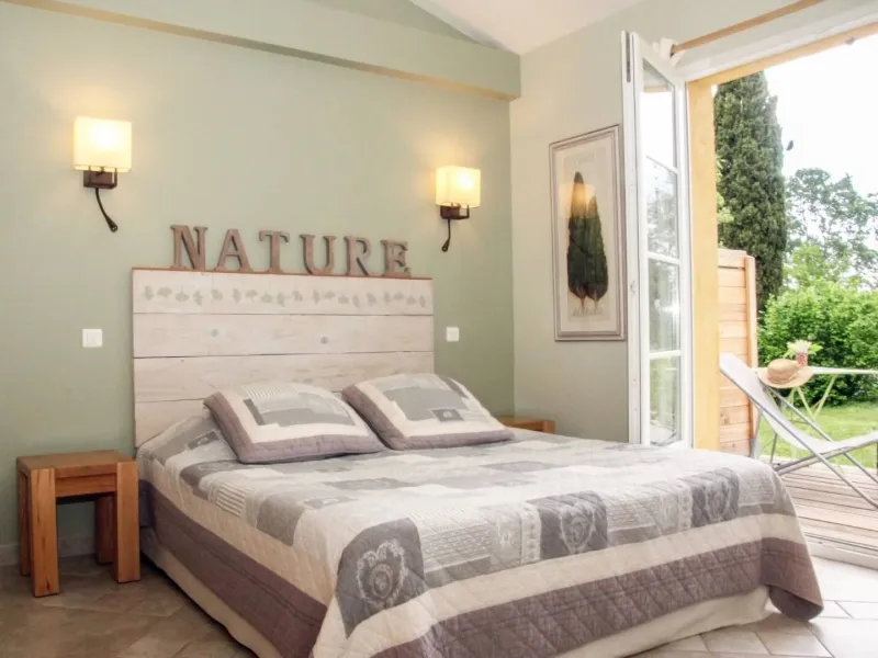 Gîte écoresponsable dans un bel environnement provençal .Une chambre avec un lit en 160*200, SDB, espace salon avec lit banquette se transformant en 2 lits gigognes 90*190, cuisine toute équipée, terrasse, climatisation réversible, transats, piscine au sel. Idéal pour passer des vacances en famille ou à deux.