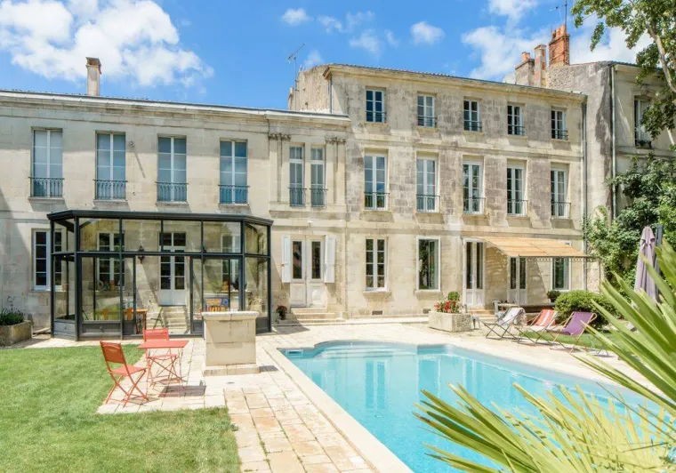 Vaste hôtel particulier du XIXème siècle, situé dans le centre historique de Rochefort. 5 chambres à l'étage. Grand jardin et piscine de 5 m x 10 m ouverte d'avril à septembre.Confort haut de gamme : lits king size 180 x 200 cm, douches à l’italienne, balnéothérapie, nespresso et plateau de courtoisie dans chaque chambre.