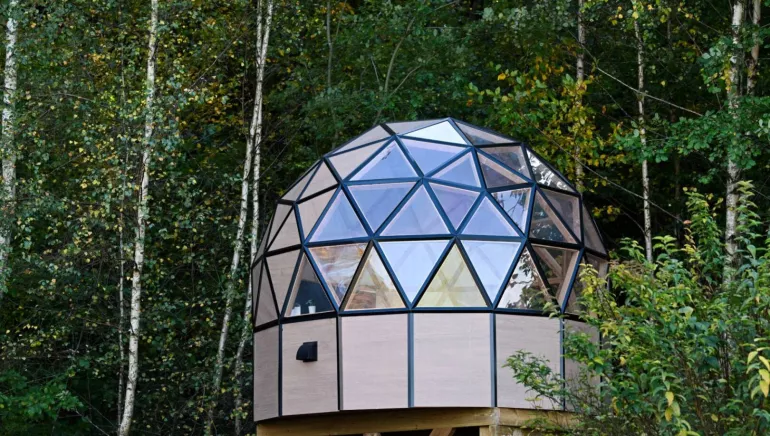 Succombez au charme du grand dôme d’Olia, un hébergement insolite et spacieux, conçu pour 2 à 4 personnes. Véritable bulle de sérénité sur deux niveaux, sa transparence vous plonge au cœur de la nature pour une expérience féérique, entre ciel et verdure. Détendez-vous dans votre bain nordique privatif, profitez d’une terrasse exclusive et laissez-vous bercer par le calme environnant pour un séjour inoubliable.