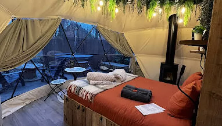 La Ferme 1851 chez Noémie et Jérôme propose le temps d’une nuit, l’expérience d’un dôme géodésique de 30 m² installé entre les arbres d’un espace boisé.
