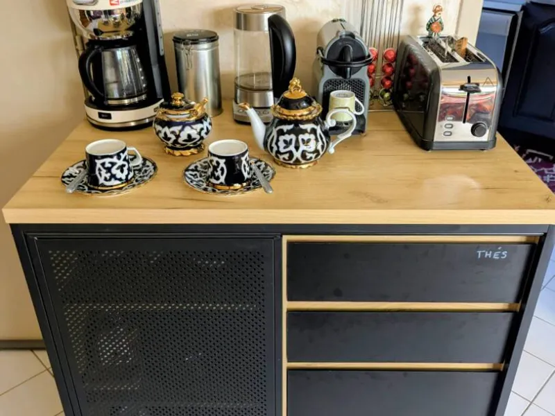 Vous pourrez également profiter des autres pièces du logement : jardin, espace repas, salon et salle de bain à partagée. Quelques marches pour accéder aux chambres à l'étage. Le petit déjeuner est en self-service à l'horaire de votre convenance.Cet établissement vous intéresse ? Rendez-vous sur leur site pour réserver ou en savoir plus.