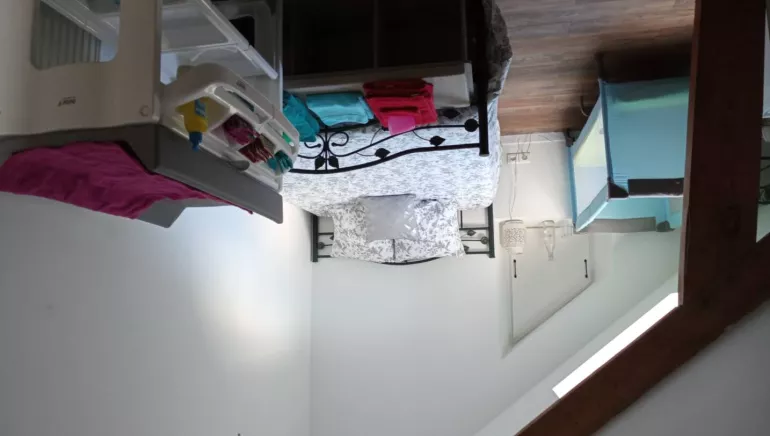 La maison dispose de deux chambres à l'étage : une chambre avec un lit double et l'autre avec deux lits simples. Idéal pour les familles avec enfants. La salle d'eau est commune. Si bébé se joint à vous, il trouvera tout le nécessaire sur place.