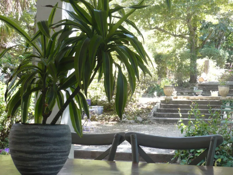 Derrière la maison se trouve un très grand jardin paysager romantique où vous pourrez vous détendre sous le soleil de France ou à l'ombre d'arbres centenaires sur l'une des terrasses.