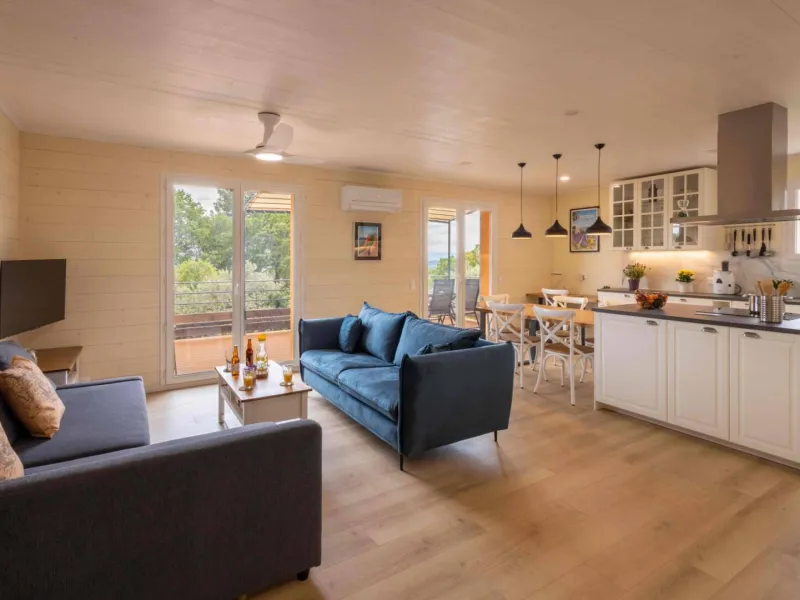 Dès votre arrivée, vous serez séduits par la vaste salle de vie baignée de lumière, avec une cuisine ouverte entièrement équipée, idéale pour préparer de délicieux repas en toute convivialité. Le salon est aménagé avec des canapés confortables, une télévision connectée et le wifi pour rester connecté tout en vous déconnectant du quotidien.