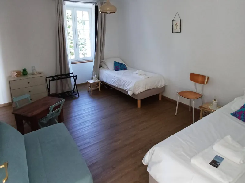 - 1 suite familiale : 1 chambre avec 1 lit 160 ; 1 chambre avec 2 lits 80 et un canapé-convertible 1 place.