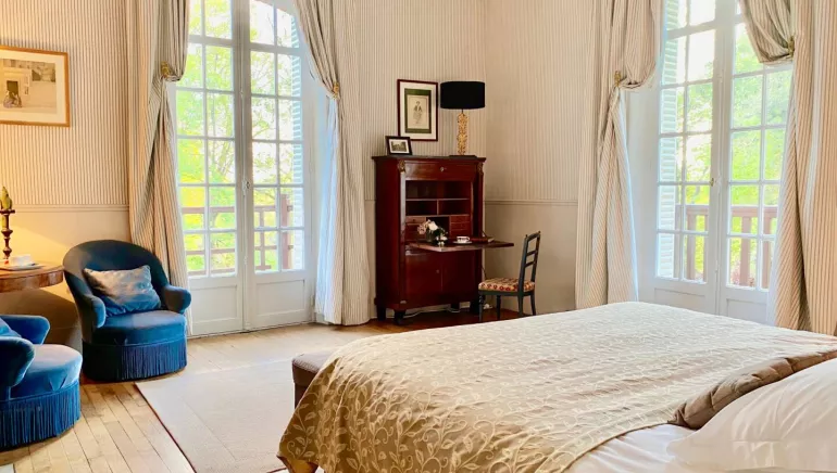 La villa est en lisière de forêt de Laigue avec une vue magnifique sur la vallée de l'Aisne et la forêt de Compiègne. Son parc est paisible, les chambres sont spacieuses, confortables et meublées comme à l'époque du 1er propriétaire Léo Delibes (compositeur majeur du 19ème siècle).
