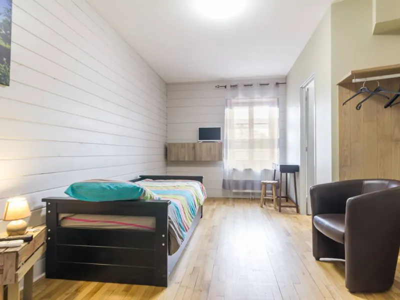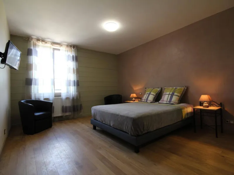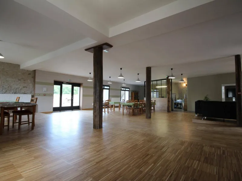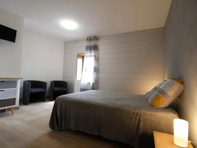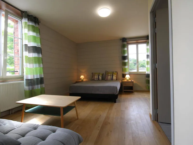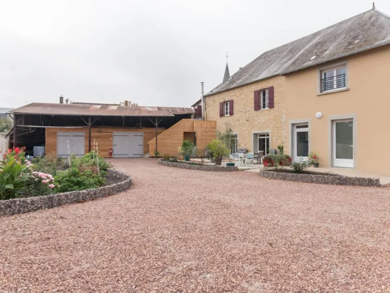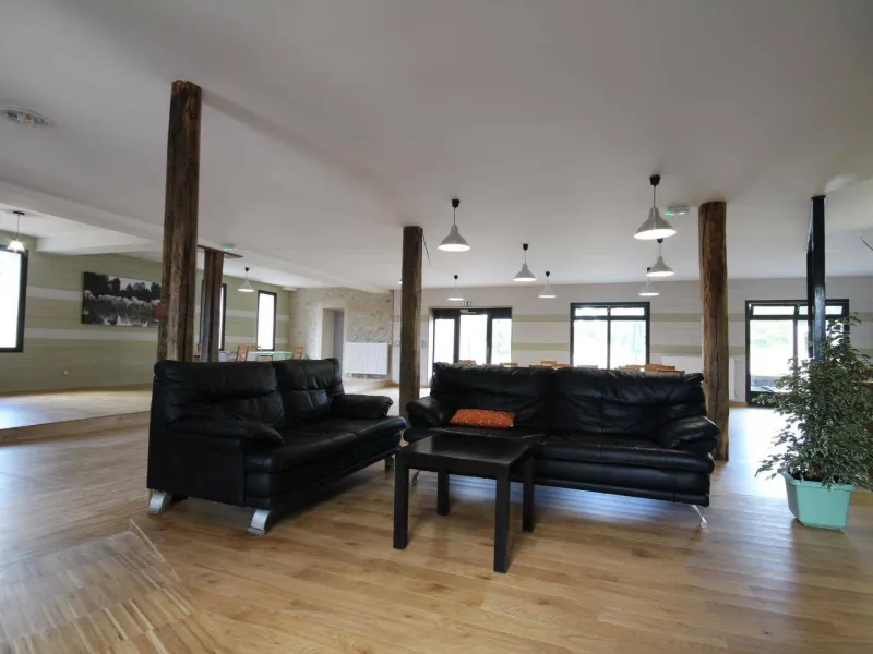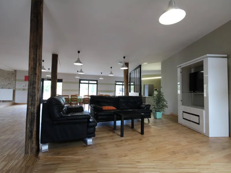 En étape ou pour un séjour, seul ou en groupe, venez séjourner dans ce gîte de groupe moderne et confortable. Idéalement placé pour les cyclistes, randonneurs et pêcheurs. Au rez-de-chaussée une grande salle de réception fait office de salon, cuisine, et salle à manger. Attenant, la chambre 5 : un studio accessible aux personnes à mobilité réduite comprenant une cuisine équipée, un lit 140x190, une télé et salle d'eau avec wc. Au 1er étage, la chambre 1 est une chambre avec 1 lit 140x190; la chambre 4 est équipée d'un lit 160x200; la chambre 2 est une chambre familiale composée d'une chambre avec 1 lit 160x200 et une chambre avec 2 lits 90x190, avec coin salon; la chambre 3 est un appartement comprenant une chambre avec 1 lit 140x190, une chambre avec 3 lits 90x190, une cuisine ouverte sur le salon, la chambre 6 a 2 lits 90x190 avec salle d'eau (douche, lavabo et wc). Toutes les chambres sont équipées d'une télé et salle d'eau (douche) ainsi que wc indépendant.Dans le jardin, 2 chambres tonneaux, chacun pour 2/3 personnes, invitent à une nuit insolite.
