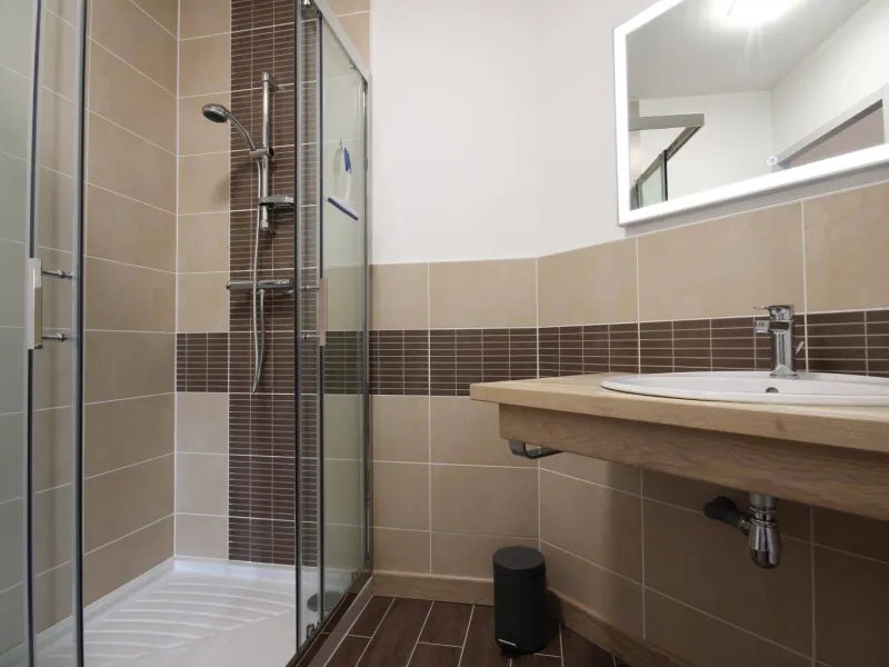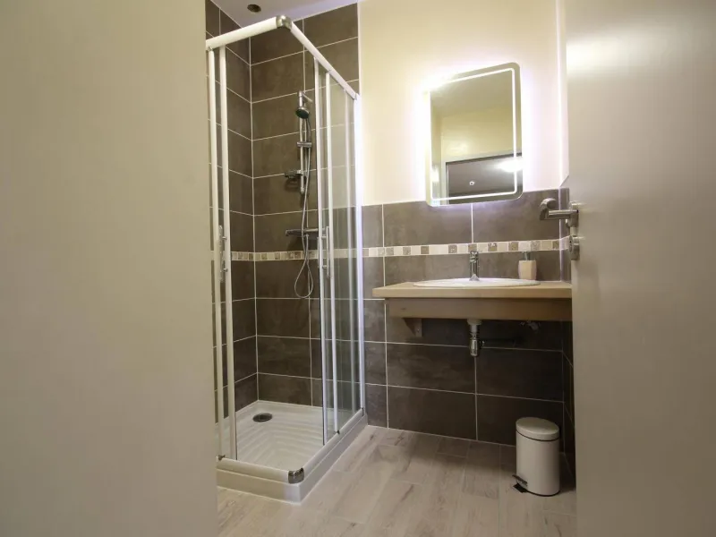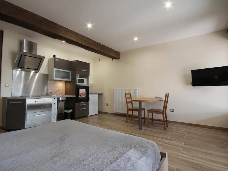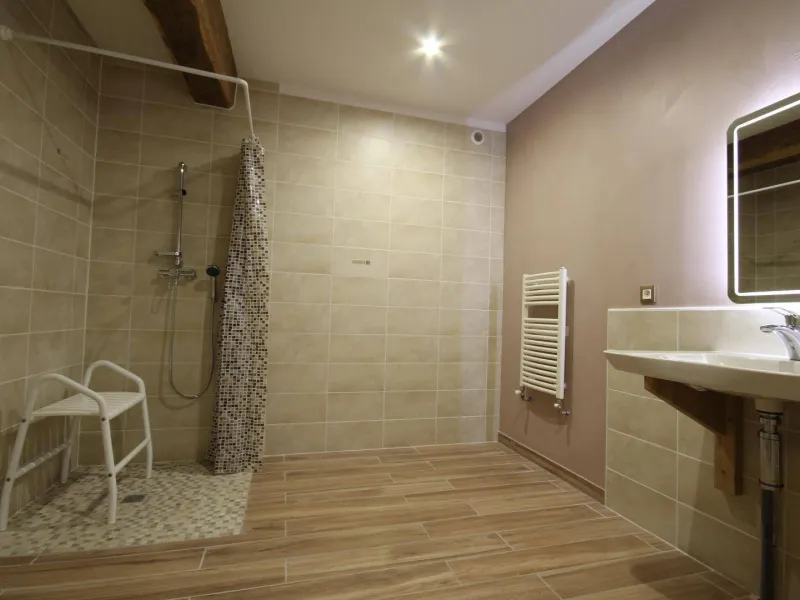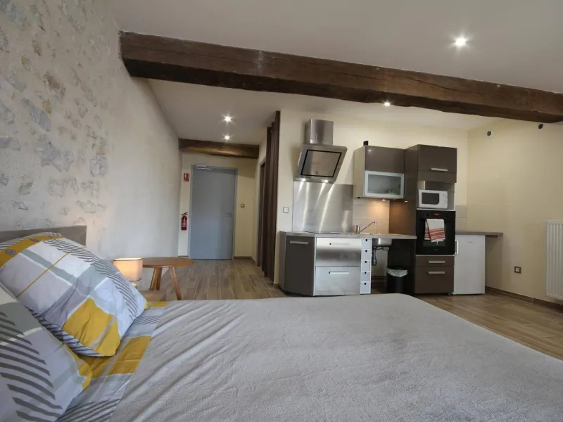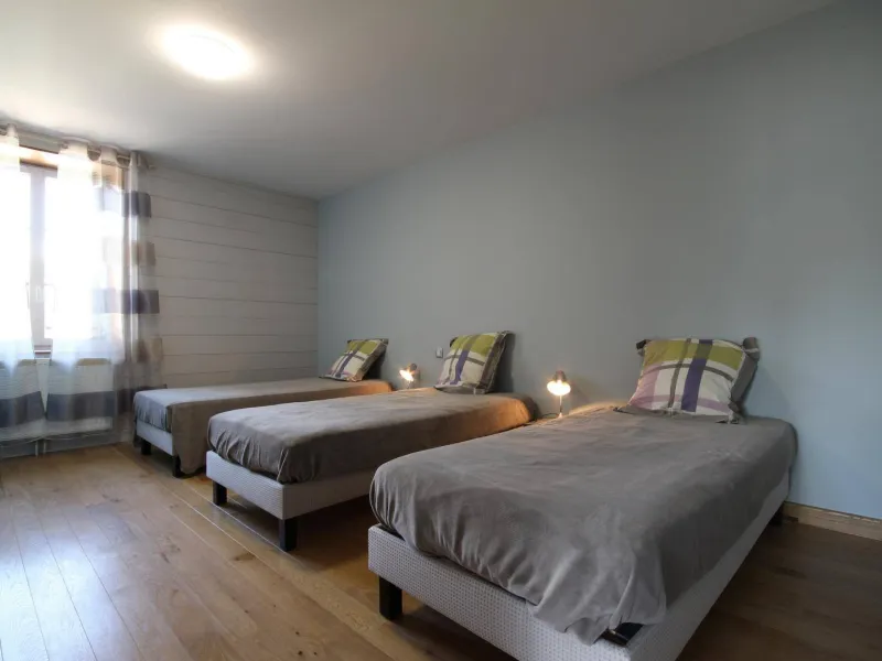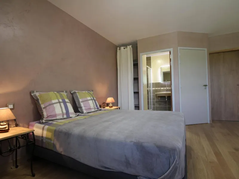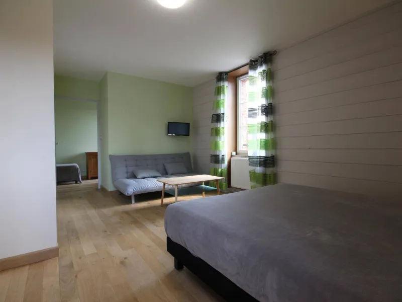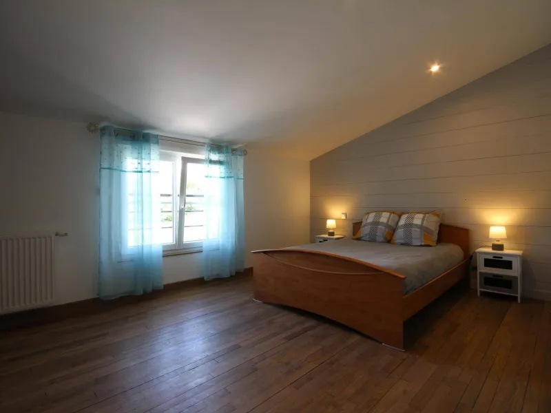 En étape ou pour un séjour, seul ou en groupe, venez séjourner dans ce gîte de groupe moderne et confortable. Idéalement placé pour les cyclistes, randonneurs et pêcheurs. Au rez-de-chaussée une grande salle de réception fait office de salon, cuisine, et salle à manger. Attenant, la chambre 5 : un studio accessible aux personnes à mobilité réduite comprenant une cuisine équipée, un lit 140x190, une télé et salle d'eau avec wc. Au 1er étage, la chambre 1 est une chambre avec 1 lit 140x190; la chambre 4 est équipée d'un lit 160x200; la chambre 2 est une chambre familiale composée d'une chambre avec 1 lit 160x200 et une chambre avec 2 lits 90x190, avec coin salon; la chambre 3 est un appartement comprenant une chambre avec 1 lit 140x190, une chambre avec 3 lits 90x190, une cuisine ouverte sur le salon, la chambre 6 a 2 lits 90x190 avec salle d'eau (douche, lavabo et wc). Toutes les chambres sont équipées d'une télé et salle d'eau (douche) ainsi que wc indépendant.Dans le jardin, 2 chambres tonneaux, chacun pour 2/3 personnes, invitent à une nuit insolite.