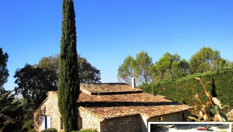 Appartement design climatisé de 79 m², récemment rénové, situé en rez-de-jardin d'un mazet traditionnel en pierres.