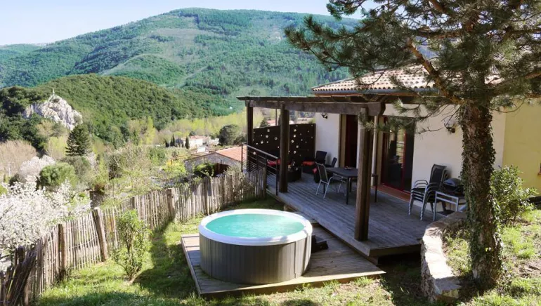 Aramon, offre une vue imprenable sur la vallée du Jaur, la montagne et le village de Prémian. Gîte confortable, moderne avec une touche campagne chic.