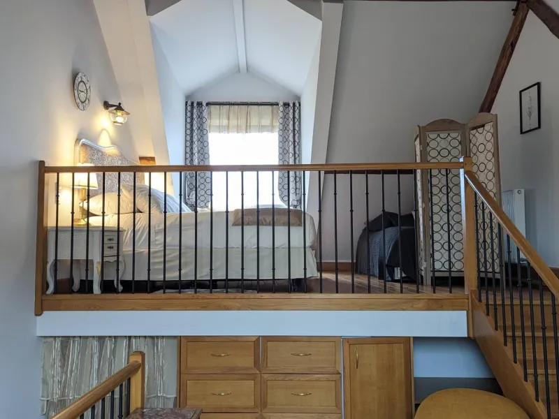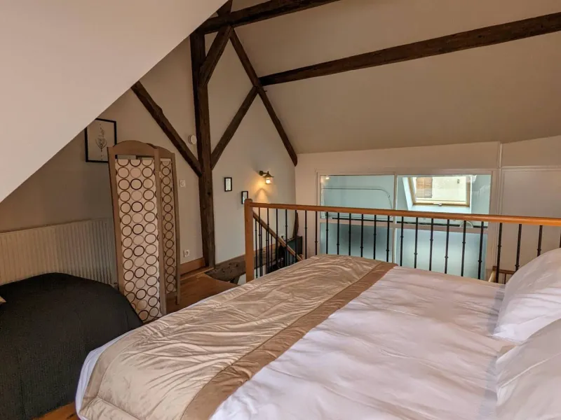 En rez de jardin, vous disposerez d’une cuisine équipée. A l’étage : coin salon avec TV écran plat (canal sat), chambre en mezzanine dotée d’un lit 180x200cm et d’un lit 90x190cm et salle de bain spacieuse avec baignoire et WC. 2 couchages possibles dans lit gigogne (2x80x200cm),facturé 15€/nuit/pers. Facilité de stationnement à 50 m sur le parking du village.