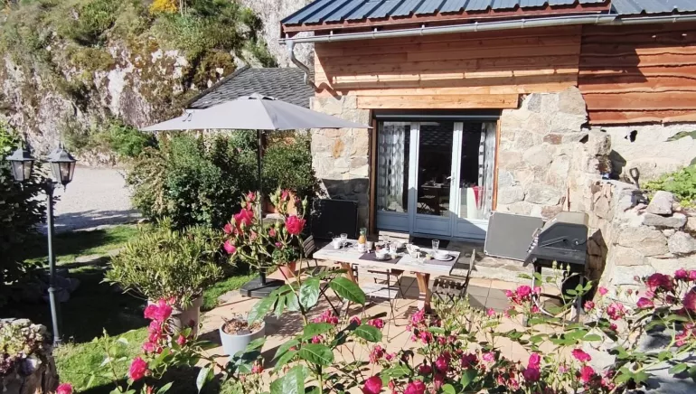 Devant la maison, une terrasse équipée de transats vous attend pour vous détendre dans un cadre verdoyant. La terrasse dispose aussi d'un barbecue/plancha à gaz.