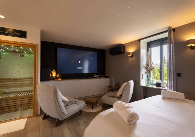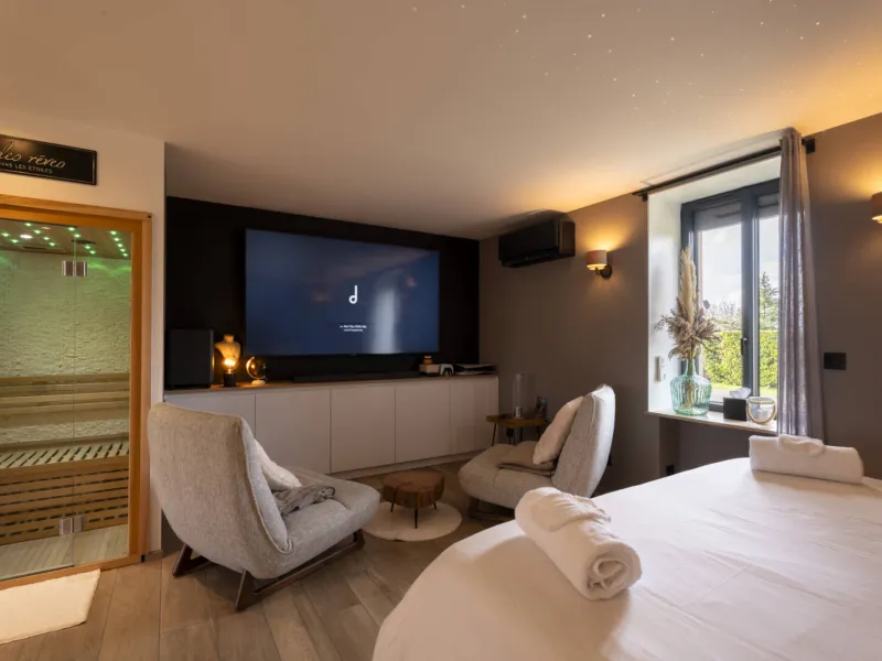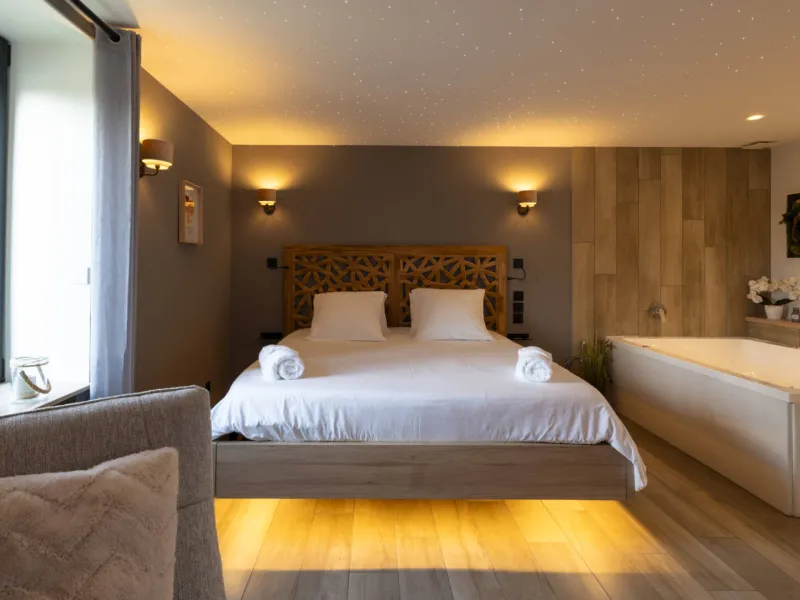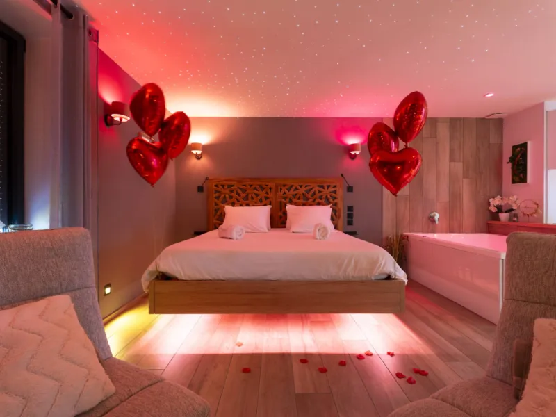 Nichée au cœur de la Bourgogne cette suite vous promet un moment hors du temps. Tout est mis en œuvre pour vous plonger dans un rêve éveillé dès les premiers instants. Vous profiterez d’un spa, d’un sauna et d’une nuit sous un ciel étoilé. Depuis votre lit king size suspendu profitez de vos films ou séries. Vous pourrez bénéficier en option d’une décoration nuptiale et romantique personnalisée. Amoureux, passionnés, soyez les bienvenus dans cet univers, où tout invite à l’exaltation.Cet établissement vous intéresse ? Rendez-vous sur leur site pour réserver ou en savoir plus.