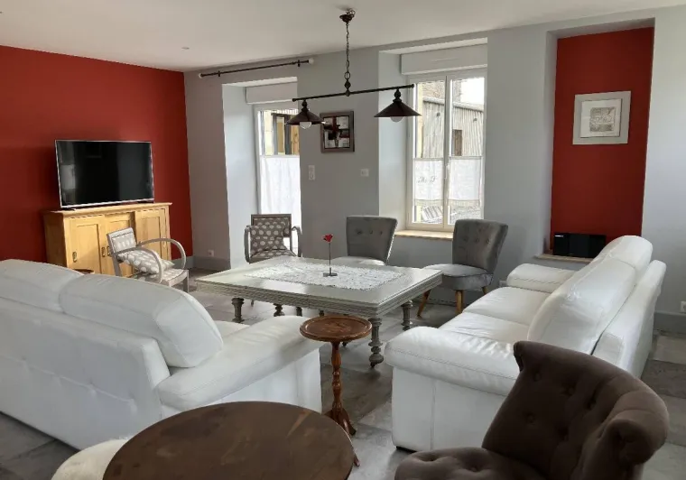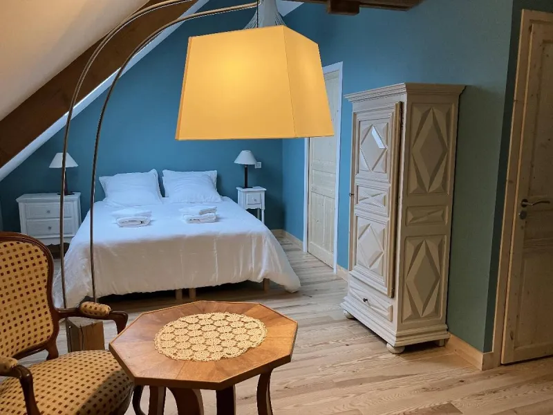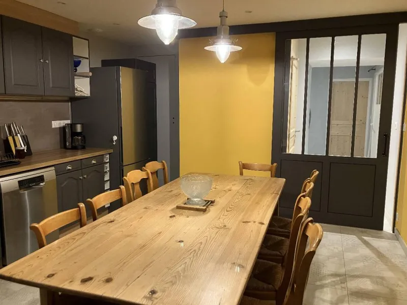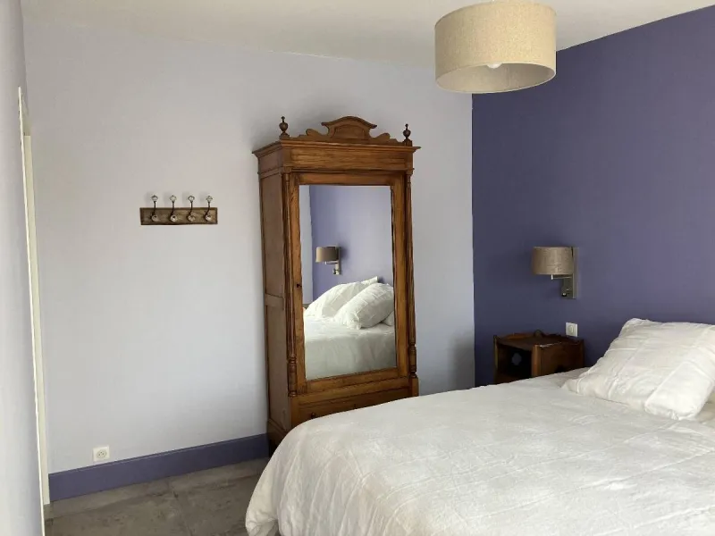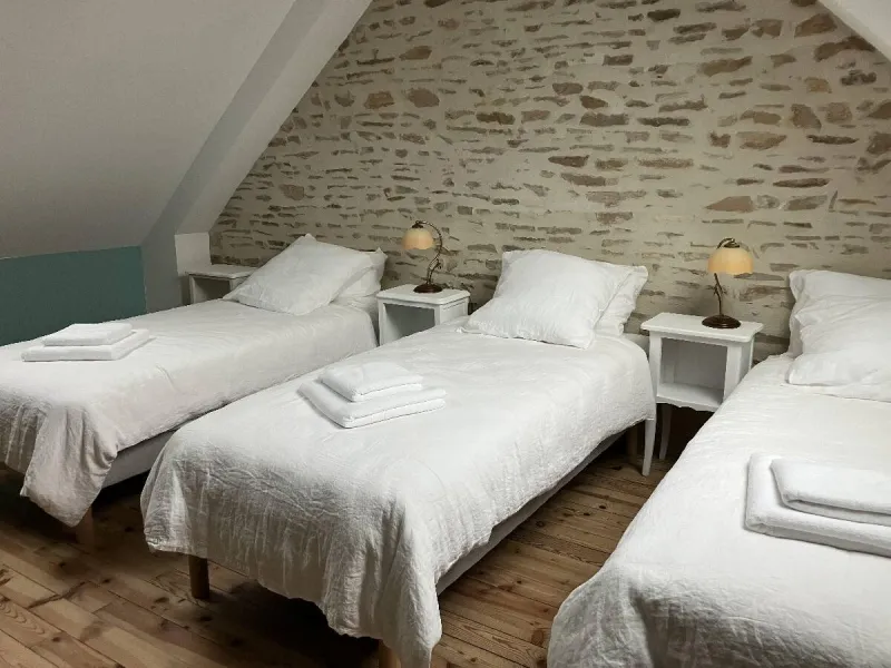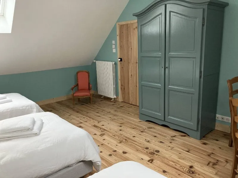 La vélogirouette est un écogite pour 12 personnes. Cette maison traditionnelle de la région a été rénovée et agrandie avec des matériaux biosourcés, le chauffage et l'eau chaude sont produits grâce à des ressources renouvelables. La récupération de l'eau de pluie sert à alimenter les WC et l'arrosage extérieur. Vous apprécierez le confort intérieur par son salon lumineux, ses literies haut de gamme en coton bio et draps en lin lavé.La maison est indépendante, aménagée sur trois niveaux. Le rez-de-chaussée comprend une cuisine - salle à manger, un salon avec poêle à bois, une entrée avec wc, une chambre avec deux lits 90x200cm jumelables, salle d'eau et wc. Le premier étage offre deux chambres avec salle d'eau et wc séparés privatifs (une chambre avec un lit double 160x200cm et une chambre avec un lit double 160x200cm et un lit simple 90x200cm). Le deuxième étage mansardé se compose d'une grande chambre avec un lit double 160x200cm, salle d'eau et wc séparés, communicante avec une chambre offrant 3 lits simples 90x200cm. Il existe également une buanderie avec lave-linge et sèche-linge, et un atelier/garage à vélos.
