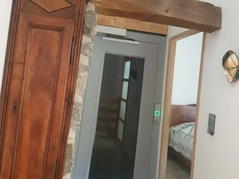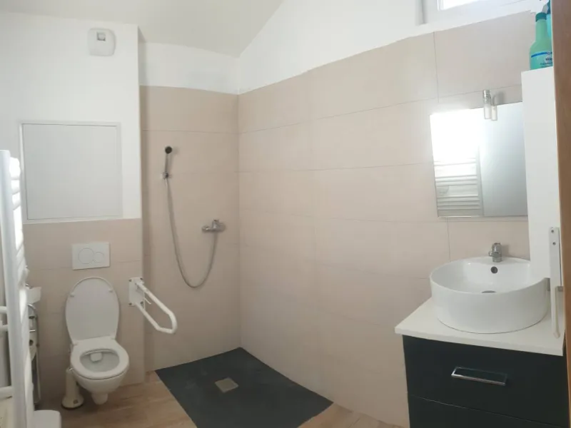 Au 1er étage, 2 chambres (avec 1 lit 2 personnes et 2 lits superposés de 1 personne) et une salle de bain avec un accès PMR par ascenseur.