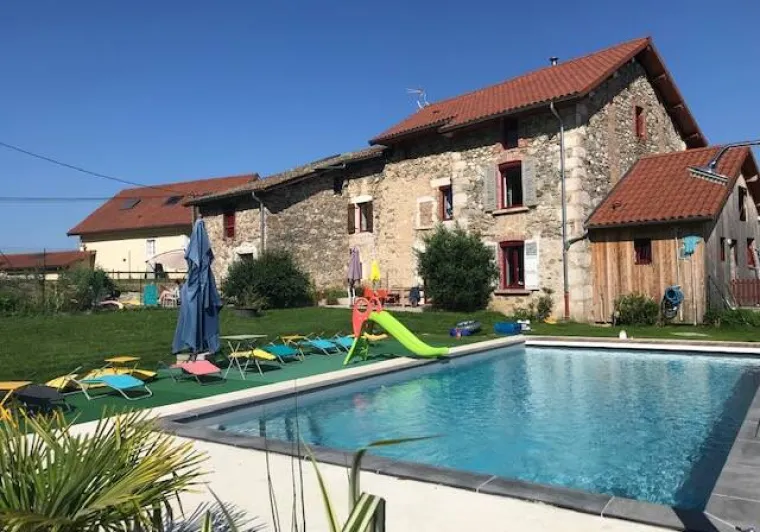 Situé en pleine campagne dans le petit hameau de Bouvier et dans le Parc Naturel Régional de Chartreuse, ce gîte est une partie de la ferme familiale du 18ème siècle. Vous y disposerez d'une terrasse équipée de 40m2 avec salon de jardin, un parking privatif et un accès au jacuzzi, sauna et à la piscine d'été.Le gîte de 95m2 dispose au rez de chaussée d'un séjour, cuisine équipée et cellier avec machine à laver et congélateur.