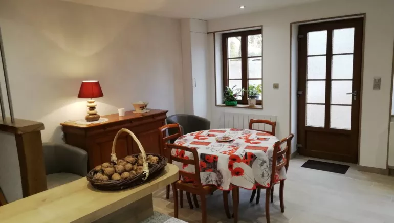 A 2 km du circuit de la Loire à Vélo, gîte confortable labellisé "Accueil Vélo" (abri vélos fermé) aménagé dans une maison de bourg du XIXème, mitoyen à un autre gîte (possibilité de communication entre les 2 maisons pour une capacité 15 pers.) - Terrain privatif et clos de 200 m2 environ à l'arrière de la maison (barbecue, salon de jardin) -
