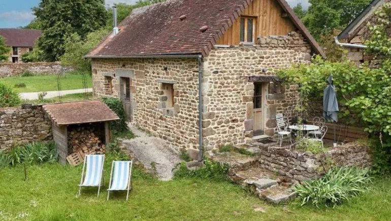 Maison ancienne indépendante rénovée en ECOGITE en 2021. Rez de chaussée : cuisine équipée, salon (poêle à bois, canapé convertible 2 personnes, TV). Etage : chambre (lit fait 2 personnes 160 cm), salle de bains avec wc. Chauffage au bois inclus. Jardin indépendant clos avec plan d'eau à proximité. Espace commun avec salle de sport et sauna 2 personnes. Location d'ânes bâtés, VTT et vélos électriques sur place (paiements CB acceptés). Prise renforcée pour la recharge de véhicule électrique sur place. Ménage inclus. Possibilité Petit Déjeuner : 12€ sur demande directement auprès de la propriétaire Ensemble d'hébergements sur 4 bâtiments indépendants et possibilité de louer tout le domaine, jusqu'à 31 personnes - Annonces G1345, G2064, G825) – nous contacter
