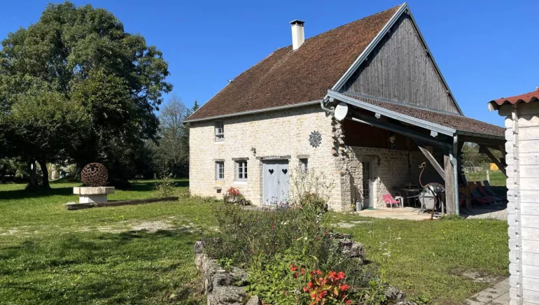 Au calme, dans la verdure, à l'entrée du village, ancienne fermette comtoise en pierres. Dans un parc non clos, le charme de la maison de campagne avec une terrasse couverte et un chalet pour vélos, poussette... Entièrement restaurée elle apportera la sérénité par son intérieur chaleureux, coloré et raffiné. Le gîte "la Charmille" est une jolie maison indépendante, sans vis à vis, proposant au rez-de-chaussée : hall d'entrée wc indépendant, cuisine équipée, salon TV écran plat, une chambre 2 personnes (1 lit 140/190) et sa salle d'eau (douche italienne, wc). À l'étage, 1 chambre avec 1 lit 140/190 , 1 chambre 2 lits 1 personne (90/200 jumelés), 1 salle d'eau (douche italienne, wc).