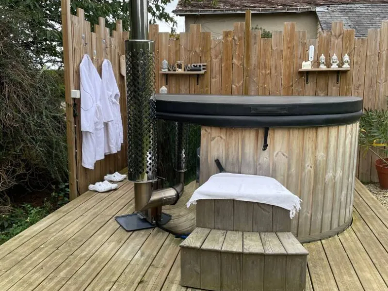 Bain nordique en supplément: 50€ par séjour. Bain en extérieur, chauffé par un poêle à bois. Moment magique de bien être et relaxation.