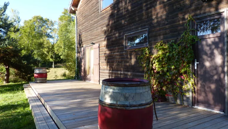 Rez-de-chaussée : cuisine équipée (piano de cuisson (5 feux gaz et double four, hotte aspirante, four à micro-ondes, lave-vaisselle, réfrigérateurs et congélateurs, cafetières électriques, vaisselle, ustensiles et batterie de cuisine, crêpière électrique, appareil à raclette, ...), grande pièce à vivre ouvrant sur la terrasse en bois : banquette, fauteuils, tables et chaises, ... TV à écran plat. WIFI (connexion gratuite et sécurisée). Jeux de société tout public.