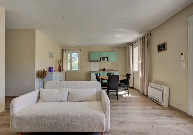 F2 (Voir F3 en supplément deuxième suite) situé au dessus de la maison du propriétaire. Entrée indépendante avec une terrasse. Gîte de 90 m² climatisé avec une deuxième terrasse couverte avec vue sur le Ventoux. Salon, séjour, cuisine provençale, salle de bains et une chambre.Cet établissement vous intéresse ? Rendez-vous sur leur site pour réserver ou en savoir plus.