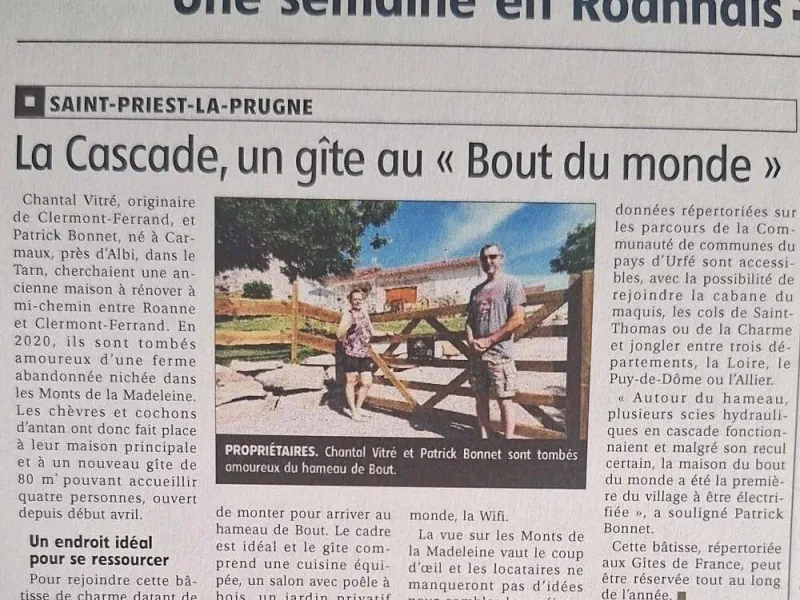 Découvrez ce gîte idéal pour 4 personnes, spacieux et chaleureux, offrant un confort optimal avec une superficie de 76 m² (rez-de-chaussée + étage). Il comprend un salon convivial avec canapé convertible et poêle à bois, une cuisine entièrement équipée, ainsi que deux chambres douillettes équipées d'un lit double 140x200 et deux lits simples 90x190. La salle d'eau moderne et fonctionnelle garantit un séjour tout confort. L'ensemble, baigné de lumière, s'ouvre sur une terrasse de 25m² et un jardin privatif propice à la détente avec vue panoramique sur la nature environnante. Une location de vacances avec nature et patrimoine à Saint-Priest-la-Prugne entre Loire, Allier et Puy de Dôme ! Amateurs de calme assourdissant et de grands espaces, vous serez conquis ! Porte d'entrée du massif des Bois Noirs, ce territoire est un véritable paradis pour les randonneurs à pieds, trail, raquettes, skis, vététistes et pratiquant du cross-country. Découvrez le puy du Montoncel, point culminant à 12 km en voiture et 3 heures à pied au départ du gîte. Laissez-vous charmer par le patrimoine local : l'église romane du XIIe siècle, le viaduc des Peux, anciennes scie à eau, et la majestueuse Cascade de Bout à seulement 500 m du gîte. Pour les épicuriens : Restaurant de La Poste à 10 mn avec son chariot de fromage et dessert, Vichy à 45 mn avec La maison Bocuse, sur la côte Roannaise à 45 mn à peine avec sa gastronomie reconnue, la Maison Trois Gros, le Château de Champlong, Le Petit Prince, Le Prieuré et bien d'autres...sont là pour surprendre vos papilles.Cet établissement vous intéresse ? Rendez-vous sur leur site pour réserver ou en savoir plus.