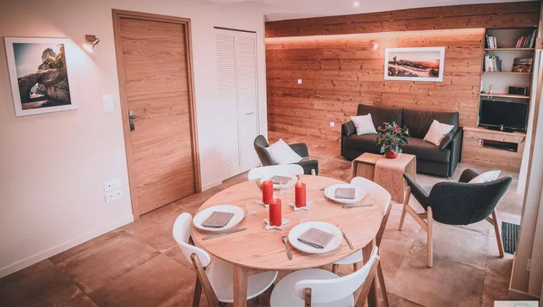 David et Marie-Alice vous proposent un joli gîte aménagé de plain-pied pour 2 à 4 pers dans l'ancienne cantine de l'école entièrement restaurée par leurs soins. Vous disposerez d'un séjour-cuisine exposition Sud avec coin salon ouvrant sur votre terrasse privative avec salon de jardin et transats. Chambre (1 lit 160x200 ou 2 lits 80x200 sur demande), salle d'eau-wc, pièce de vie (TV écran plat, wifi, enceinte bluetooth, cuisine intégrée avec lave vaisselle, lave linge, vaisselle de qualité, ...). Chauffage au sol, parking sur place, local skis et vélos. Nombreuses activités à proximité : randonnée, VTT, escalade, parapente, ski, raquettes, piscine couverte, golf, ski-roues... Cinémas, bowling, commerces... Gîte situé en rez-de-jardin, mitoyen à la maison des propriétaires. Un second gîte (5 places) est également disponible dans la maison.