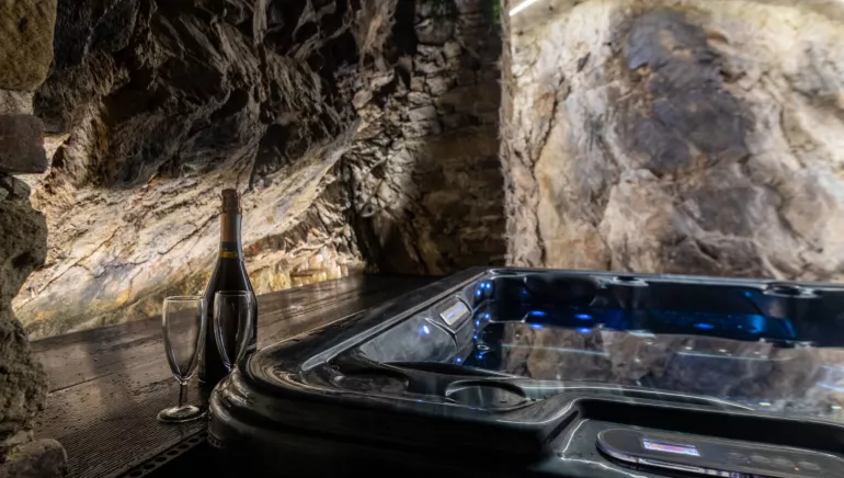 Un spa creusé dans la roche, flambant neuf, accessible directement depuis le logement et 100% privatif.