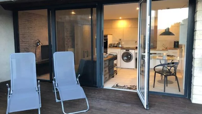 L'Indus est un gîte pour 2 personnes entièrement adapté PMR. Appartement très clair de plein pied à la décoration soignée, la salle à vivre entièrement vitrée donne sur le parc avec un panorama magnifique. Du séjour ou de la cuisine vous avez accès sur une terrasse qui vous est dédiée où vous pourrez vous prélasser sur les chaises longues et contempler le paysage.