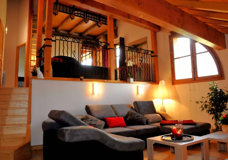 À l’étage, un majestueux mais néanmoins chaleureux salon vous accueille, surplombé par une première chambre triple en mezzanine de 11.86m² équipée d’un lit double et d’un lit simple. Vous disposez d’une deuxième chambre double de 12.89m² avec terrasse privative ainsi qu’une vaste salle de bain pour l’étage.