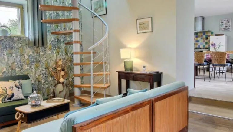 1 salon, 1 W.C. et 1 très grande cuisine salle à manger au rez-de-chaussée. T.V. WIFI