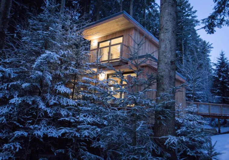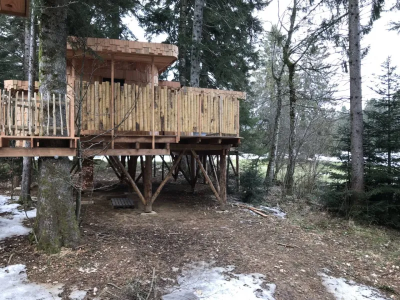 Le Domaine de l'Authentique vous accueille dans ses nouvelles cabanes perchées. En couple ou entre amis, profitez d'un séjour dans des cabanes pleines de charme avec vue sur la chaîne du Chasseral en Suisse.